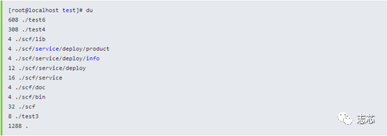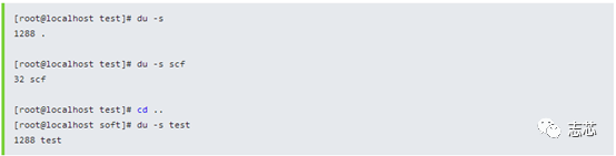 只显示当前目录下面的子目录的目录大小和当前目录的总的大小,最下面的1288为当前目录的总大小。