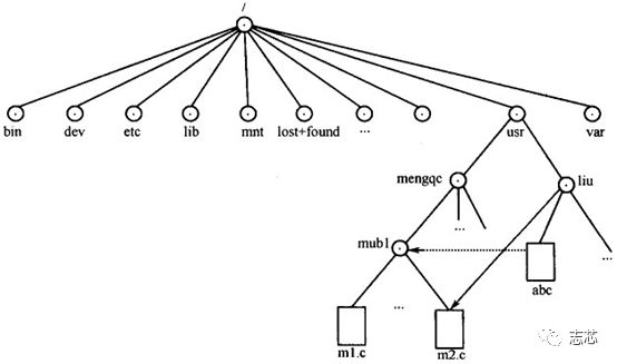 将目录/usr/mengqc/mub1下的文件m2.c链接到目录/usr/liu下的文件a2.c