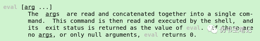 上图是在tclsh中man出来的解释,大意就是说args被读取并连接到单个命令中,然后这个命令通过shell读取并执行,并且它的退出状态作为eval的参数被返回,如果没有args,eval返回0;