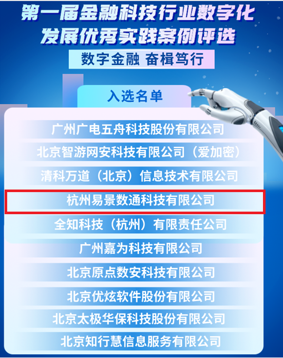 易景科技在金融数字化创新领域中脱颖而出,获此殊荣。