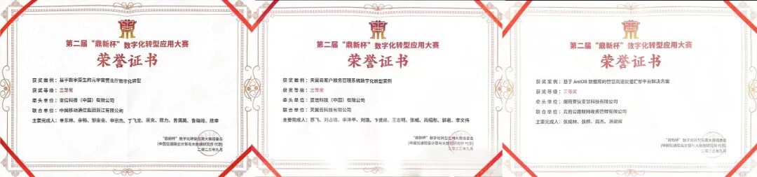 图:“鼎新杯”二等奖“5G+智慧火电数字化转型实践”上海庙项目,遵从国电电力智慧企业建设规范“两平台、三网络”整体架构,采用5G核心网下沉厂侧方式,组建与公网完全物理隔离的工业无线网,在兼容开放、扩展性强和保障数据安全的基础上,为全厂移动应用、单兵设备、巡检机器人、无人配送车、无人机、AR/VR等智能工器具的接入提供网络支撑,实现了5G网络“无盲区覆盖,无隐患运行”。布署完成后,网络速率相较此前公网提升5倍以上,实现对核心区域的重点保障;支撑数十种5G应用,建设运营效率大幅度提升;该方案对电力行业输变电等环节的大量应用场景提供了有价值的借鉴与参考。此外,亚信科技联合合作伙伴提报的“基于数字原生的元宇宙营业厅数字化转型”、“天翼云客户服务管理系统数字化转型案例”、“基于AntDB数据库的智慧高速数据汇聚平台解决方案”分别在“数字原生新实体”、“业务融合创新”、“信息技术应用创新”等三个赛道上斩获三等奖。