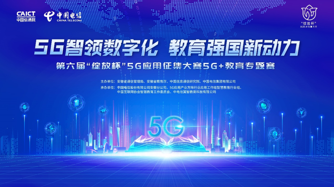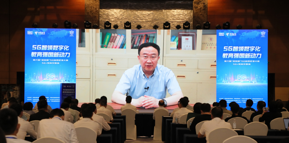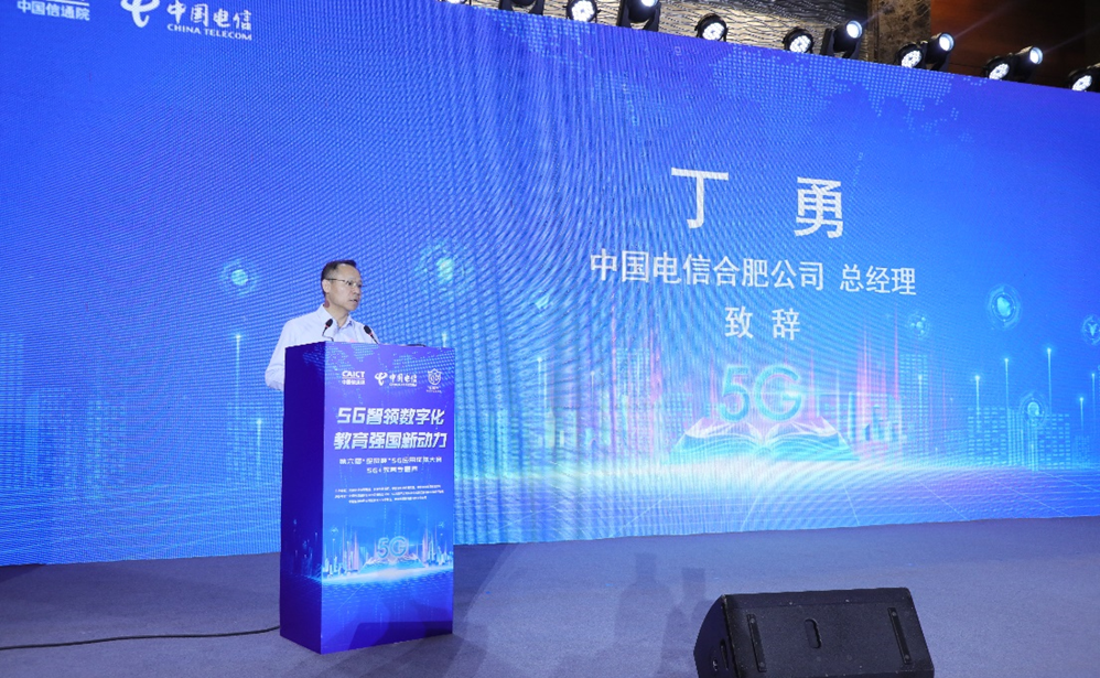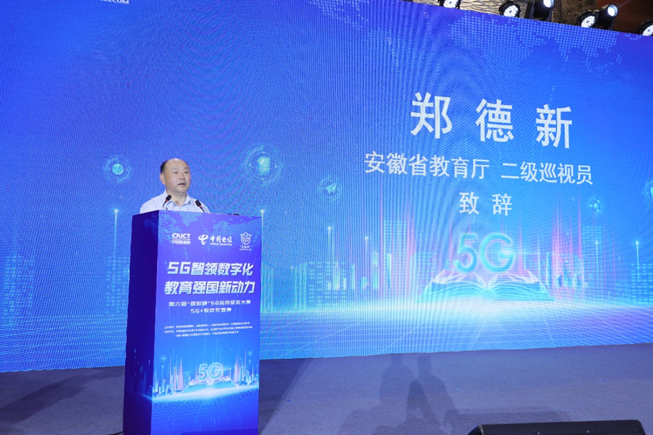 2023年9月27日,第六届“绽放杯”5G应用征集大赛5G+教育专题赛决赛在安徽合肥举办。教育部科学技术与信息化司司长雷朝滋、中国互联网协会常务副秘书长陈家春、安徽省通信管理局副局长胡健、安徽省教育厅二级巡视员郑德新、中国电信合肥公司总经理丁勇出席决赛颁奖活动并致辞。