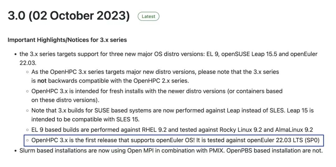 OpenHPC 3.0版本:https://github.com/openhpc/ohpc/releases/tag/v3.0.GA