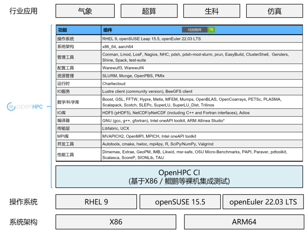 据了解该版本添加了针对openEuler 22.03 LTS版本的支持,这是首个支持openEuler的OpenHPC版本,意味着OpenHPC中的重要HPC组件(例如MPI库、运行时、资源管理)在openEuler平台上直接可用,全球HPC用户可以更方便地部署使用openEuler。