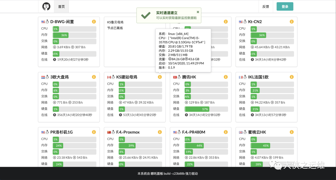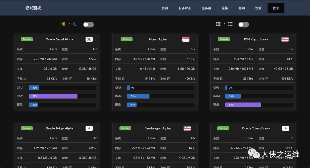 这款名为“哪吒”的服务器监控面板是一款功能丰富且易于使用的工具,可以帮助您更轻松地管理和监控服务器,确保它们始终保持高性能和可用性。