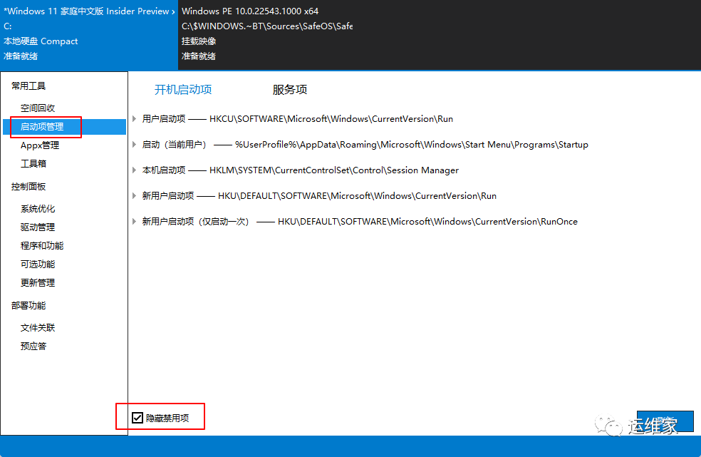 点击“启动项管理”--“隐藏禁用项”;