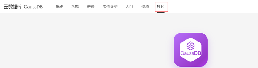 方法二:通过华为云官网GaussDB数据库产品主页进入社区