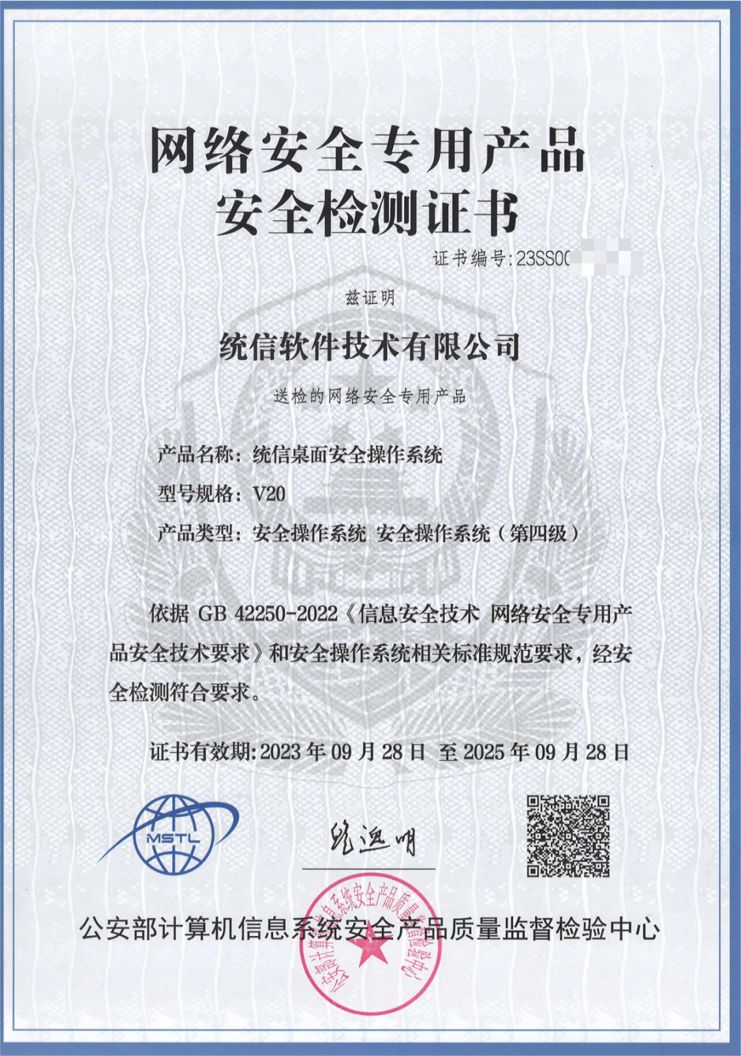 本证书遵循《GB∕T 20272-2019 信息安全技术 操作系统安全技术要求》和《GB 42250-2022信息安全技术 网络安全专用产品安全技术》相关要求进行检测。