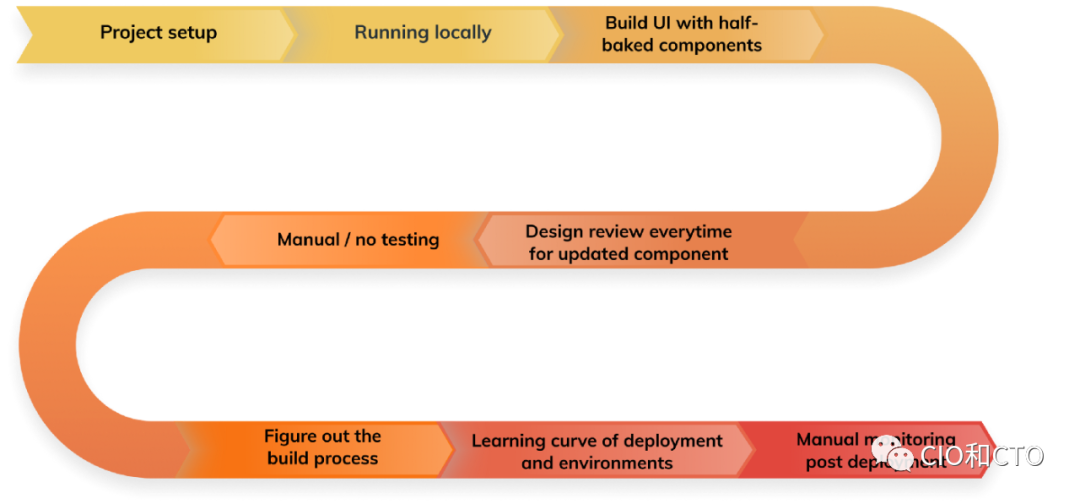 让我们看看我们在组建前端核心团队之前遵循的日常工作流程,以及让我们放慢速度的漏洞是什么。