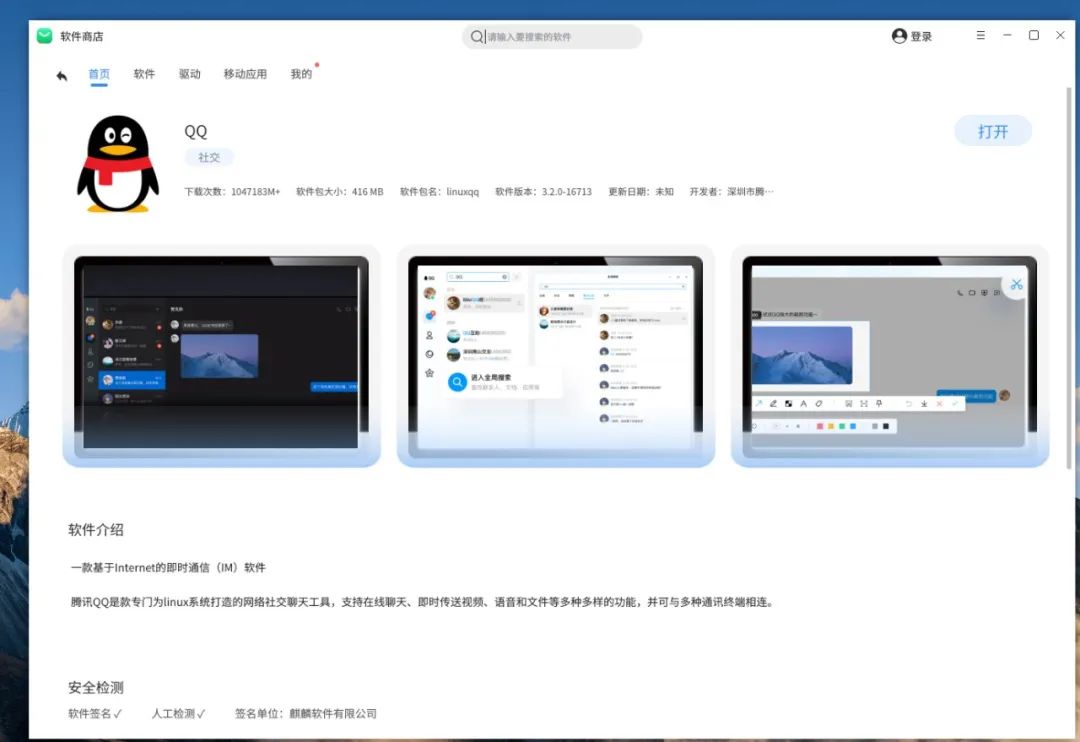 去年,腾讯QQ团队启动 QQ 架构升级计划,QQ 首次在Windows、macOS、Linux 三个平台上实现架构统一。麒麟软件与腾讯QQ Linux团队携手合作,开展一系列的适配优化和性能提升工作。目前,新版腾讯QQ已支持银河麒麟桌面操作系统V10 SP1各平台版本,并已在麒麟软件商店上线,为您带来更快速、高效的通讯体验!