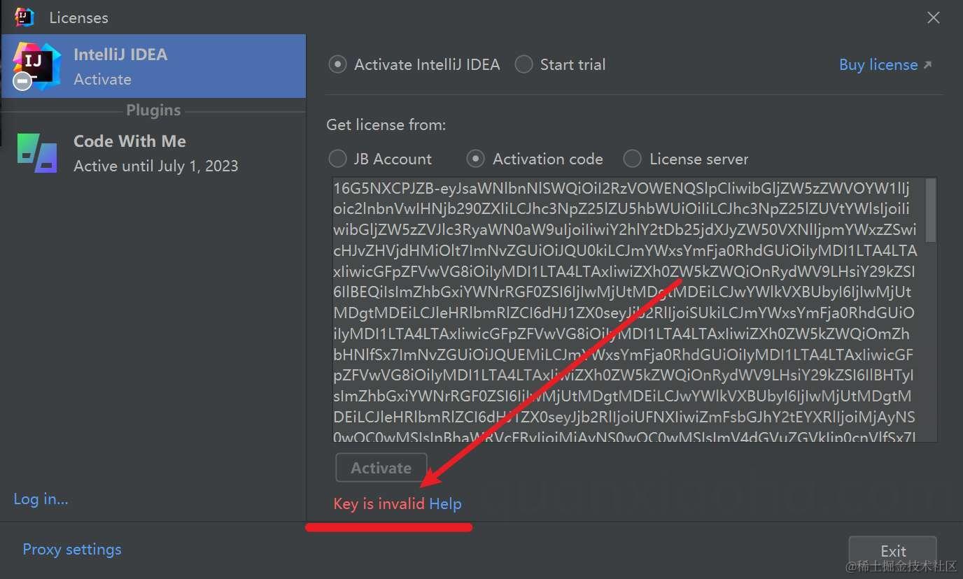 JetBrains 系列产品(IDEA、Pycharm 等) (不论是执行激活脚本自动引入破解补丁,还是手动引入补丁),在输入激活码时,部分小伙伴反应说提示 Key is invalid 无法激活, 如下图所示: