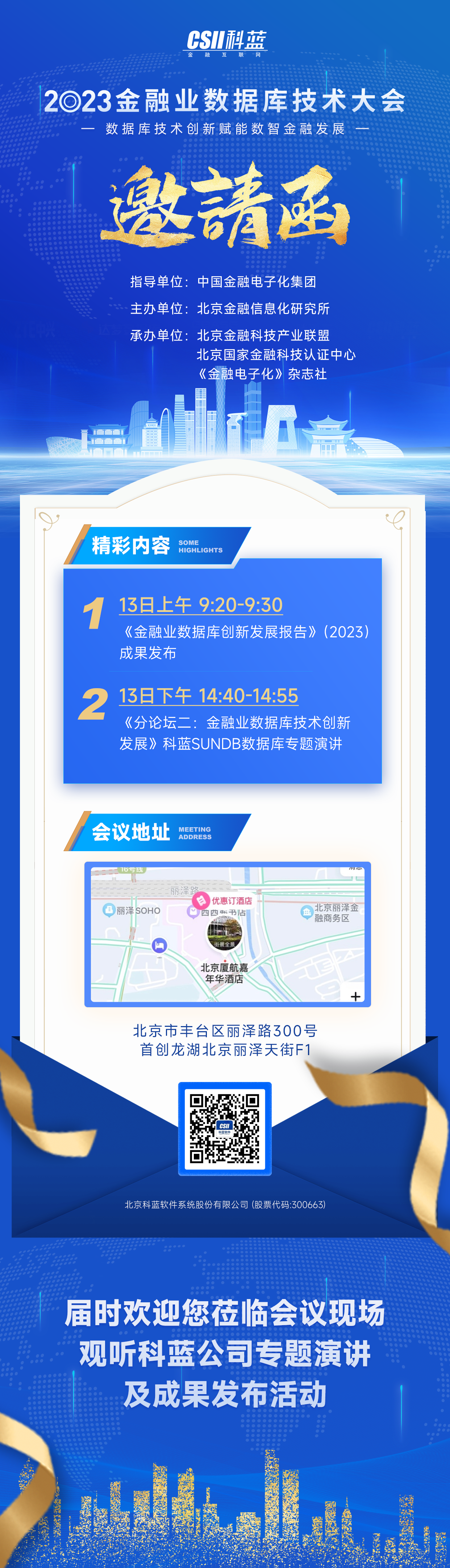 邀请函 |《2023金融业数据库技术大会》科蓝SUNDB数据库邀您莅临