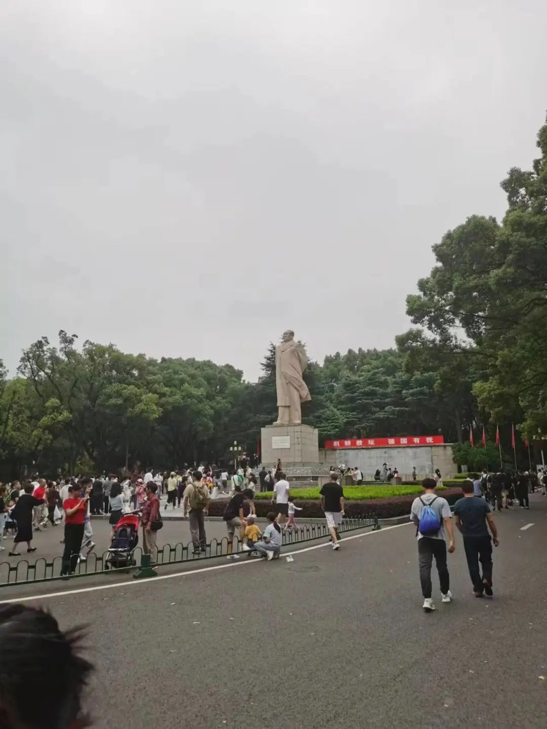 但是当我们从桥上看景区入口,发现排队的人,异常地多,估计排很久,于是打了退堂鼓,没进景区。。。提一句,橘子洲头景区也需要通过公众号免费预约的(同岳麓山),