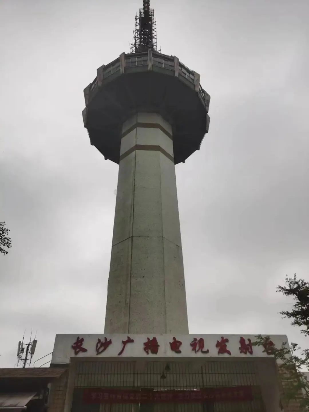 我们选择步行到岳麓山的北门下山,几乎都是下坡,没台阶都是平路,而且时常有观光车呼啸而过,途中看到了这个广播发射塔,