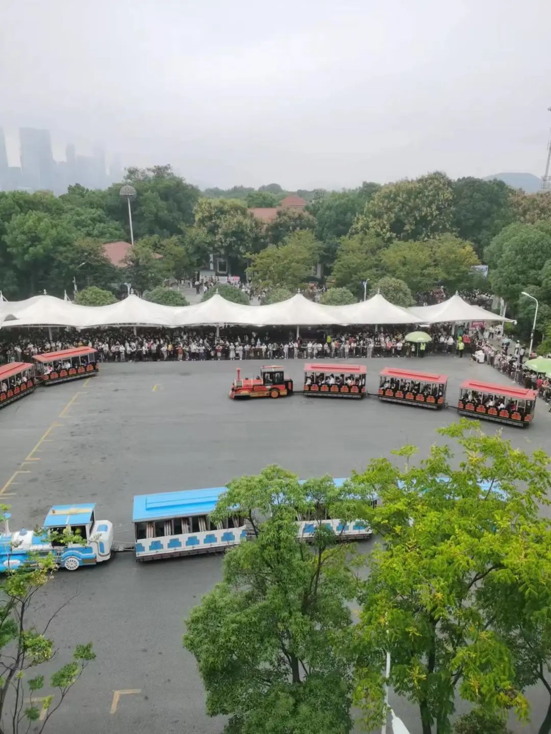 从这可以乘坐观光车到达岳麓山顶,单程20元,往返30元,但实际上爬山的人更多,排队不是很久,也是通过公众号可以直接买票,只能买当日的观光车票,但是到山顶,排队坐车下山的人更多了,至少得等半小时。
