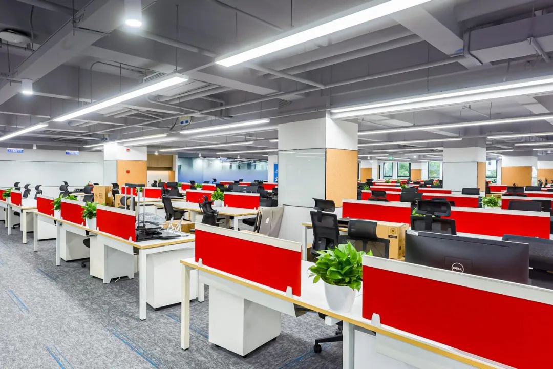 新办公室人均工位使用面积提升8%,新增多套新风系统,改善办公区域空气质量;优化办公照明,亮度提升30%;并在办公区域增加大量白板,符合科技公司研发团队随时小组讨论的需求。