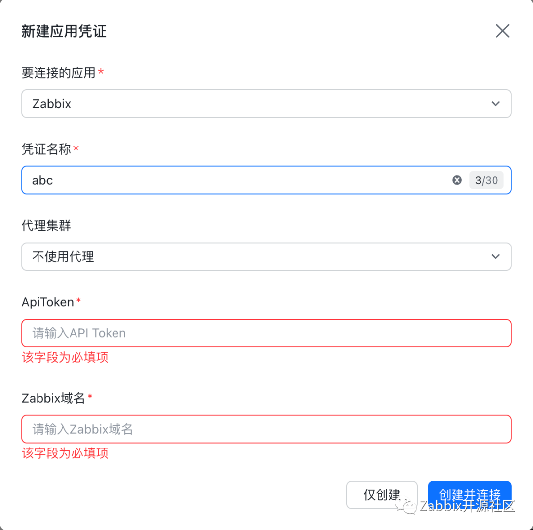 注意:如果仅使用该模版,ApiToken和Zabbix域名可以设置为任意值并创建连接都可以生效。