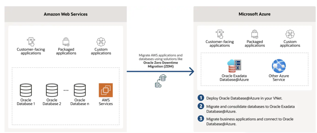 在 Oracle Database@Azure 上整合 Amazon RDS,降低许可和运营成本。享有 Oracle Database Extreme Performance Edition、Oracle Maximum Availability Architecture、Exadata 的性能优化以及协作式支持等种种优势,所有这些均由 Oracle 和 Microsoft 提供。