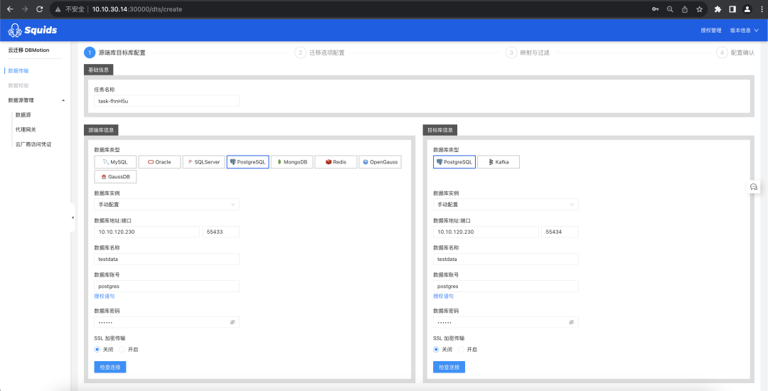 Squids DBMotion继续横向扩展数据库能力,本次不仅增加了PostgreSQL、GaussDB和openGauss的同构数据库能力,也提供了这些数据库到Kafka的数据流订阅功能,同时增加了Redis的增量和分片集群同步能力。另外,在任务列表查看,源对象筛选等方面也做了大量优化,大大提升了用户体验。