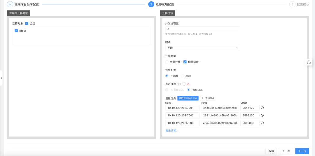 支持分片集群校验,如果是分片集群的话,单击“获取源库当前位点”,可以获取整个分片集群的所有当前起始位点。