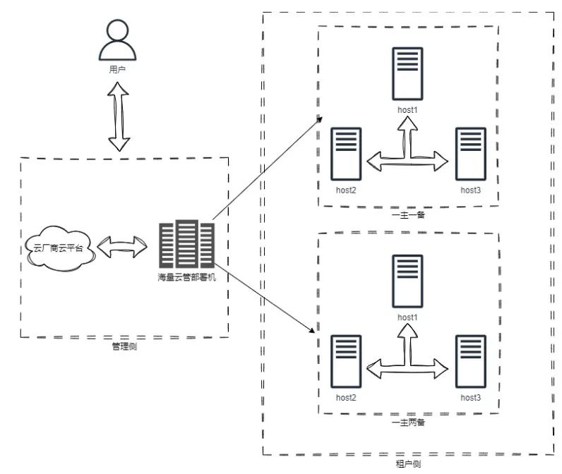 vCloud云管平台支持在云厂商平台管理面申请一台ECS服务器即可进行平台的部署。若用户在控制台进行创建实例的操作后,云管平台就会自动在租户面创建ECS实例,然后在ECS上进行Vastbase的自动部署安装。其中,对于单实例,需要一台ECS。对于一主一备和一主两备,需要三台ECS。