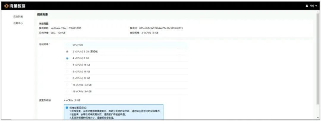 变更计算规格时,实例会重启,如果是主备实例,则先变更当前备库,再变更主库。变更过程中对应的实例状态为“规格变更中”, 变更完成之后实例状态恢复为“正常”。