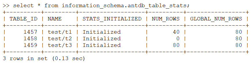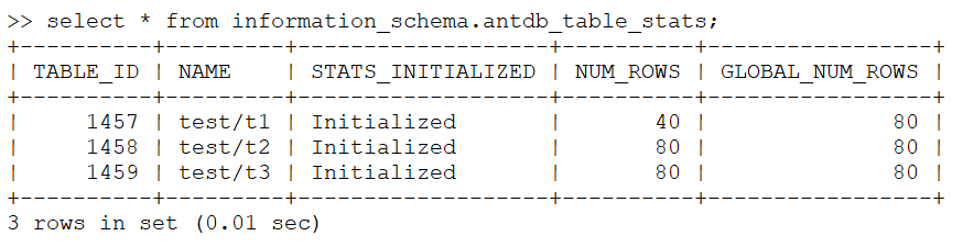 上面通过操作直观展现了部分统计信息的结果,下面我们来看看AntDB-M分布式集群内部是如何生成全局统计信息的。