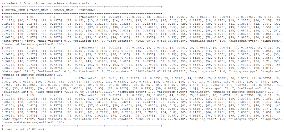 全局直方图信息在各个节点上都会持久化存储,其它全局统计信息可通过参数配置是否需要持久化。平时使用的时候,这些统计信息都是从内存中获取。