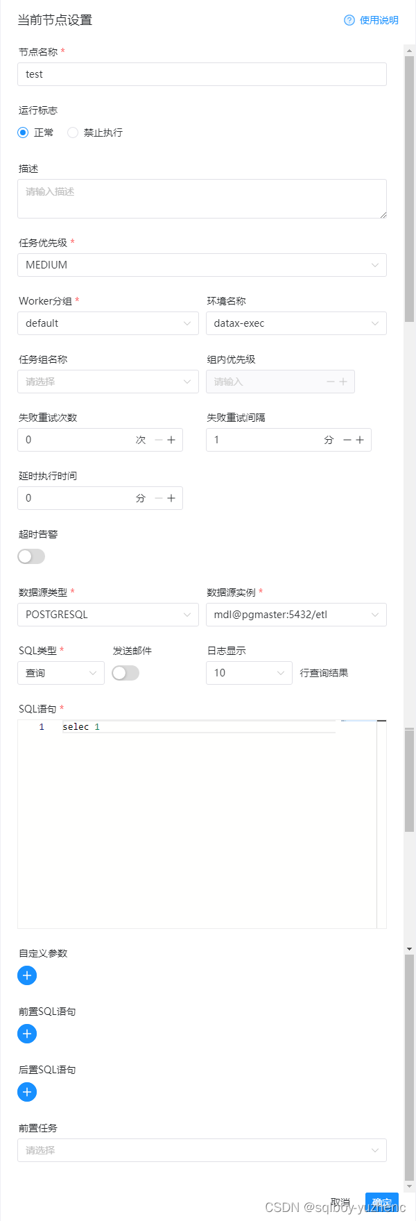 su - postgres# 必须在pg的主机上安装paramiko模块pip install paramiko# 以postgres用户登陆psql客户端到etl数据库psql etl -U postgres# 上面已经创建了plpython3u插件,这里不需要再次建立了# 创建远程执行命令函数tool.sp_remote_exec_command_nopassCREATE OR REPLACE FUNCTION tool.sp_remote_exec_command_nopass(remote_command text, remote_host character varying DEFAULT 'dpmaster'::character varying, remote_port integer DEFAULT 22222, remote_username character varying DEFAULT 'dp'::character varying, remote_return_mode character varying DEFAULT 'stdout'::character varying)RETURNS textLANGUAGE plpython3uSECURITY DEFINERAS $function$import paramiko"""/** 作者 : v-yuzhenc* 功能 : 免密(需要配置ssh免密)在远程服务器执行一条命令* remote_command : 需要执行的命令* remote_host : 远程主机名或ip* remote_port : ssh端口* remote_username : 免密登陆的用户* remote_return_mode : 返回信息的模式,stderr返回标准错误信息,否则返回标准输出* */"""# SSH连接信息host = remote_hostport = remote_portusername = remote_usernameprivate_key_path = '/home/postgres/.ssh/id_rsa'ssh_command = remote_command# 连接SSH服务器ssh = paramiko.SSHClient()ssh.set_missing_host_key_policy(paramiko.AutoAddPolicy())private_key = paramiko.RSAKey.from_private_key_file(private_key_path)ssh.connect(host, port, username, pkey=private_key)# 通过SSH执行命令stdin, stdout, stderr = ssh.exec_command(ssh_command)p_stdout = stdout.read().decode().strip()p_stderr = stderr.read().decode().strip()# 关闭SSH连接ssh.close()# 打印响应结果if remote_return_mode == 'stderr':return None if p_stderr == '' else p_stderrelse:return None if p_stdout == '' else p_stdout$function$;-- PermissionsALTER FUNCTION tool.sp_remote_exec_command_nopass(text, varchar, int4, varchar, varchar) OWNER TO tool;GRANT ALL ON FUNCTION tool.sp_remote_exec_command_nopass(text, varchar, int4, varchar, varchar) TO tool;GRANT ALL ON FUNCTION tool.sp_remote_exec_command_nopass(text, varchar, int4, varchar, varchar) TO dp;\q