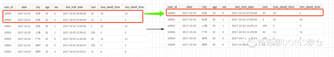 当我们导入数据时,对于 Key 列相同的行会聚合成一行,而 Value 列会按照设置的 AggregationType