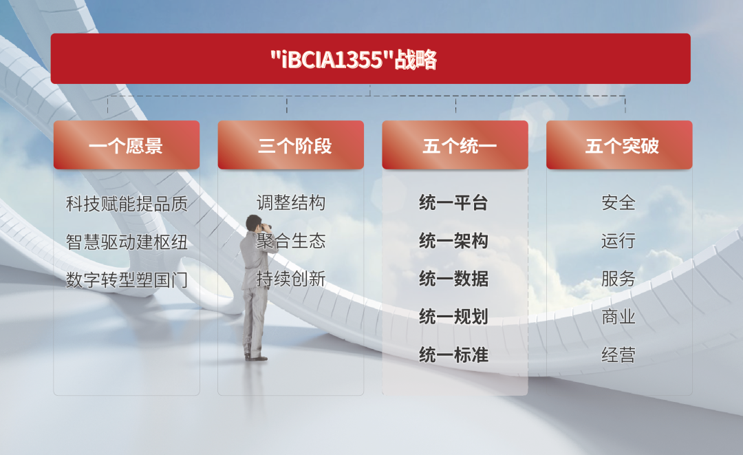 信息科技部在模式转型的工程中,通过行业、标杆、客户以及自己的现状评估分析,创造性地提出首都智慧机场转型“iBCIA1355”战略,这是智慧机场转型的基础建设保障机制,对后期IT基础能力平台建设起到强有力的指导作用与保障作用。