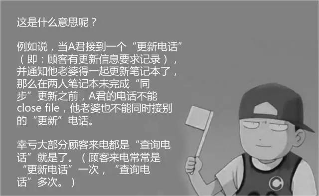 “这样一来,每次有新的顾客信息“更新”,我们两人都得同时做记录,我们就不能在并行的时间段里接电话了!”