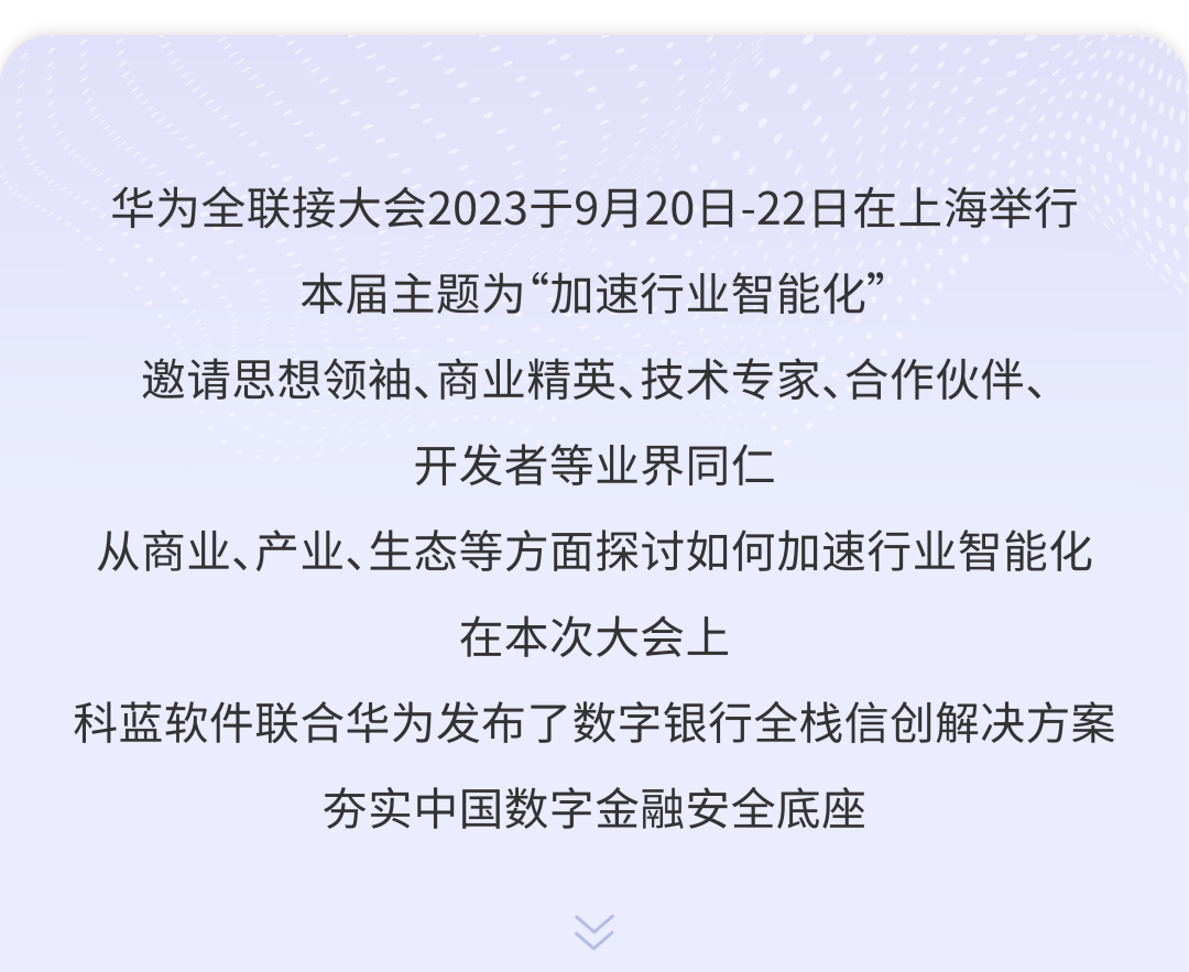 正如华为副董事长、轮值董事长、CFO孟晚舟在本次大会上发表的“打造中国坚实的算力底座,为世界构建第二选择”主题演讲所说,中国IT企业联合就是要给中国数字产业一个安全可靠的选择。目前,科蓝软件与华为在多领域建立了多层次的深度合作关系,并在金融行业打造了多个全栈信创案例,科蓝软件与华为的深度联合,正是从国产化的角度给中国数字金融安全可控的选择。