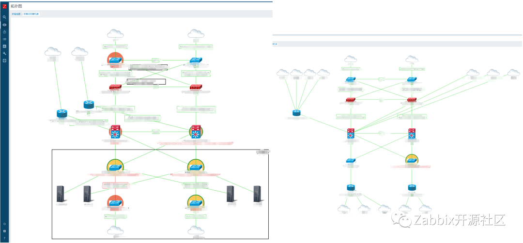 通过Zabbix网络拓扑图可直观查看出现故障的网络设备以及网络设备线路,还可以查看线路的实时进出口流量,方便快速定位网络故障。