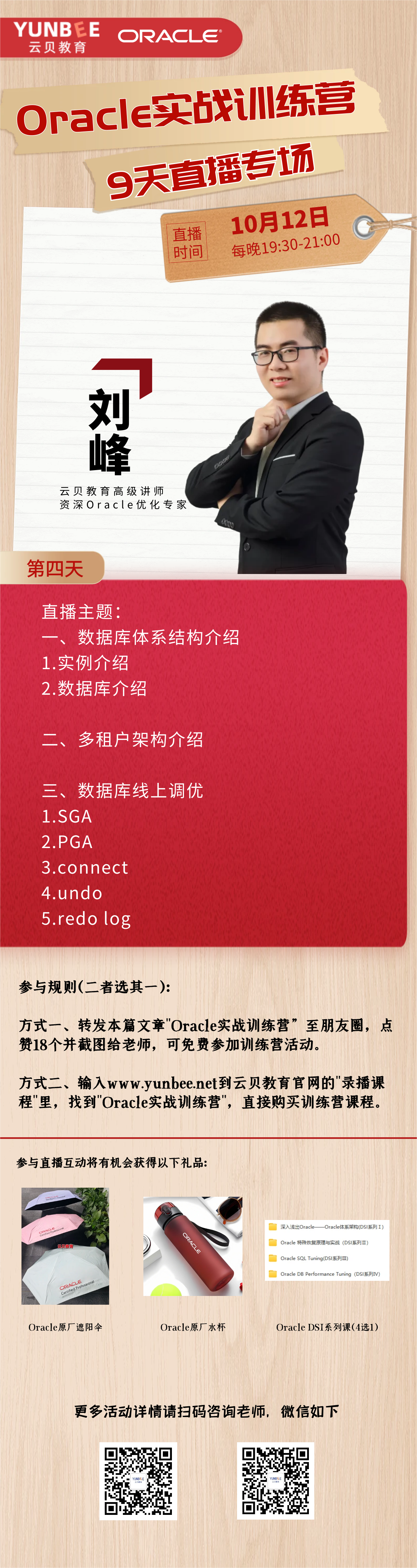 Oracle实战训练营第4晚【限时免费】!仅需转发朋友圈点赞18个即可免费拥有学习机会,还有机会获得Oracle原厂遮阳伞、水杯及Oracle DSI课程!!