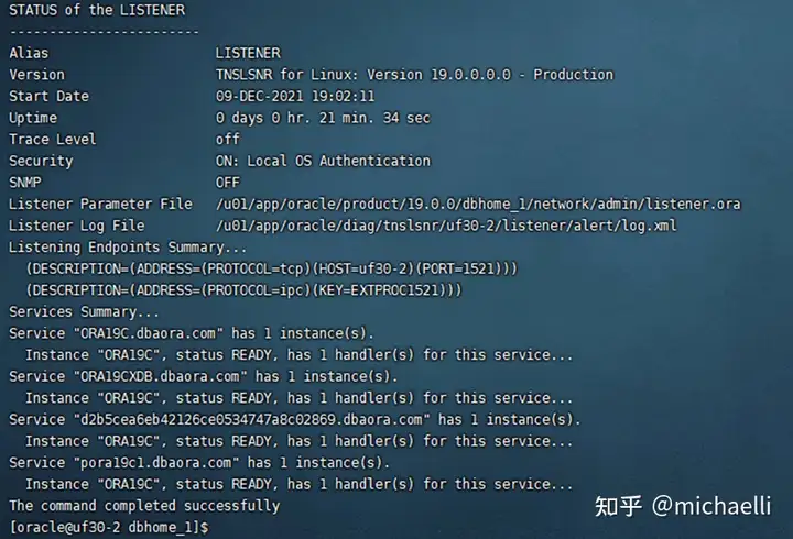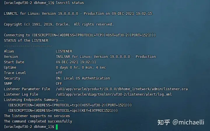 - 数据库创建完成后,使用lsnrctl status验证下监听状态: