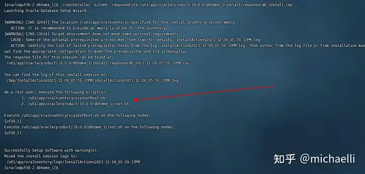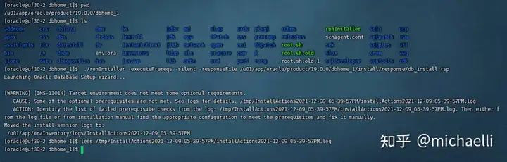 - 静默安装命令:/u01/app/oracle/product/19.0.0/dbhome_1/runInstaller -silent -responseFile /u01/app/oracle/product/19.0.0/dbhome_1/install/response/db_install.rsp