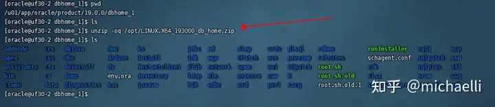 - 解压下载的oracle19c的二进制zip包到 $ORACLE_HOME目录下;