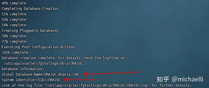 - 上述命令 “sqlplus sys/hundsun@ORA19C as sysdba” 中使用的 ORA19C 是配置文件 dbca.rsp 中指定的 sid=ORA19C,是 oracle数据库的System identifier (SID),;