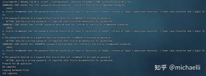 - 静默模式下需要更改配置文件 $oracle_home/assistants/dbca/dbca.rsp;