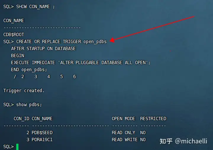 - 我们可以通过创建一个触发器让 PDB 随CDB启动