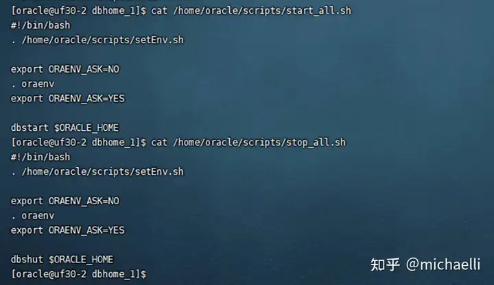 4. 最后,上文还提供了封装的oracle数据库系统的启停脚本 /home/oracle/scripts/start_all.sh 和 /home/oracle/scripts/stop_all.sh,如果需要的话,还可以配置oracle数据库系统随 linux 操作系统的启动而自动启动,在此不再赘述。