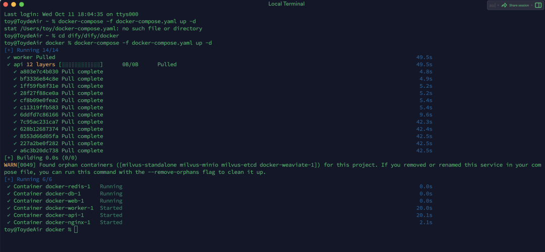 执行:docker-compose -f docker-compose.yaml up -d