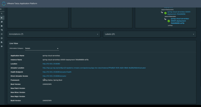 通过针对 VMware Tanzu 的 Application Live View 查看原生编译的 Spring 应用程序的实时信息