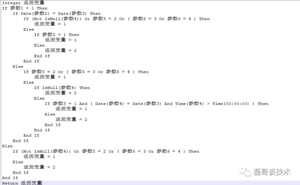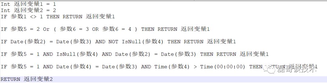 “参数5 = 1 AND Date(参数4) = Date(参数3) AND Time(参数4) > Time(00:00:00)”。