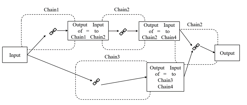 顺序链:将基础链按照顺序前后组合起来,上一个基础链的输出是下一个基础链的输入,顺序链又包括以下两种: