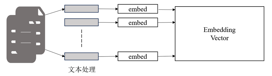 其中,Embedding和向量存储是数据库智能问答系统的核心技术。Embedding将数据库相关文本转化为能够表征文本语义的向量,向量存储技术则将文本分解成块并存储于向量数据库中。具体流程如下图所示: