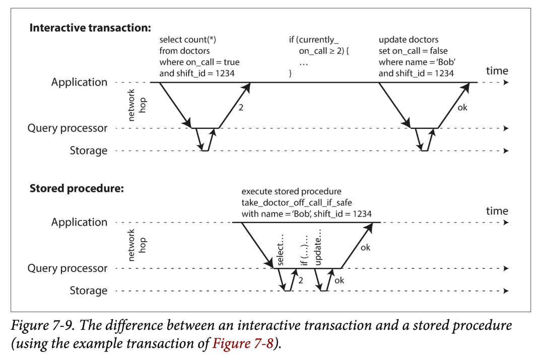 因此,单线程串行事务系统不允许交互式的多语句事务。用户需要将多语句封装为存储过程一次性提交给数据库。如果数据都在内存中,则存储过程可以被快速的执行。