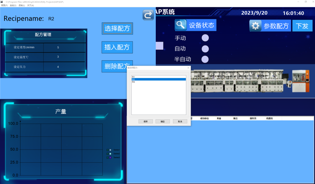 RMS配方管理:通过与亚控电子半导体行业EAP开发平台结合,可以实现配方自动选择、自动加载、自动校验,能够确保配方的完整性并支持可追溯性,极大降低生产加工过程的用错配方的概率,极大降低操作员的工作强度。防止程序选错,造成产品报废等问题。