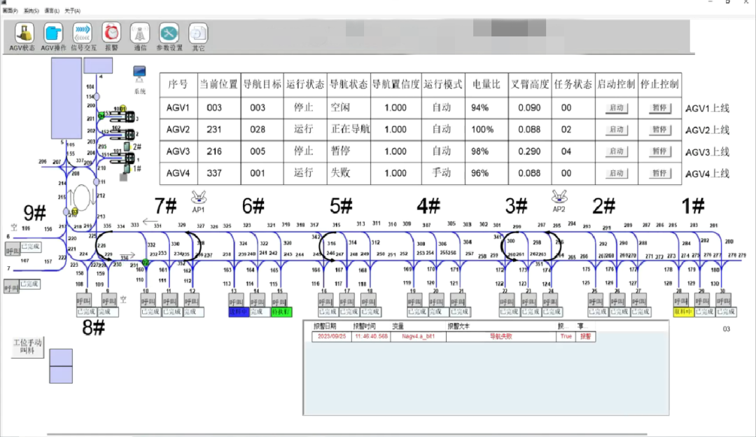 AGV调度管理:通过任务的优先级和AGV的可用性,将任务分配给最合适的AGV执行。通过实时监控AGV的位置和速度,避免AGV之间的碰撞,并确保安全运行。收集和分析AGV运行数据,提供报表和统计分析,帮助优化AGV调度策略和运营效率。